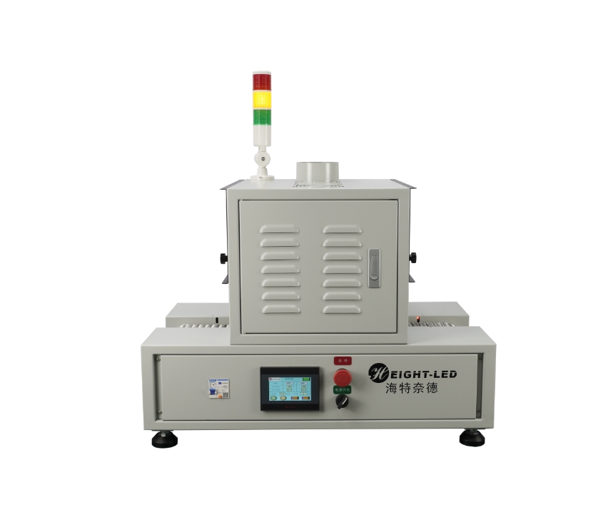 2. 設備提供連續(xù)模式和后端模式可選,連續(xù)模式下,點擊啟動按鈕,UV機傳送帶及UVLED一直工作,點擊停止按鈕停止UV機工作;后端模式下,點擊啟動按鈕,UV機傳送帶及UVLED開始工作,當后端傳感器感應到產(chǎn)品后,傳送帶及UVLED停止工作,當產(chǎn)品拿走后繼續(xù)進入下一個循環(huán)。